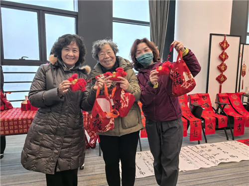 書法愛好者們揮毫潑墨,筆尖在紅紙上流轉(zhuǎn)。