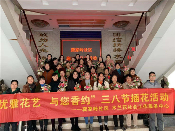 3月7日上午,龔家?guī)X社區(qū)居委會(huì)與木蘭花社會(huì)服務(wù)中心一起開展了一期“優(yōu)雅花藝 與您相約”三八節(jié)插花活動(dòng)。社區(qū)插花活動(dòng)的消息剛一發(fā)出,就激起了很多居民的參與熱情。報(bào)名的30多位居民前來參加花藝會(huì)活動(dòng)。